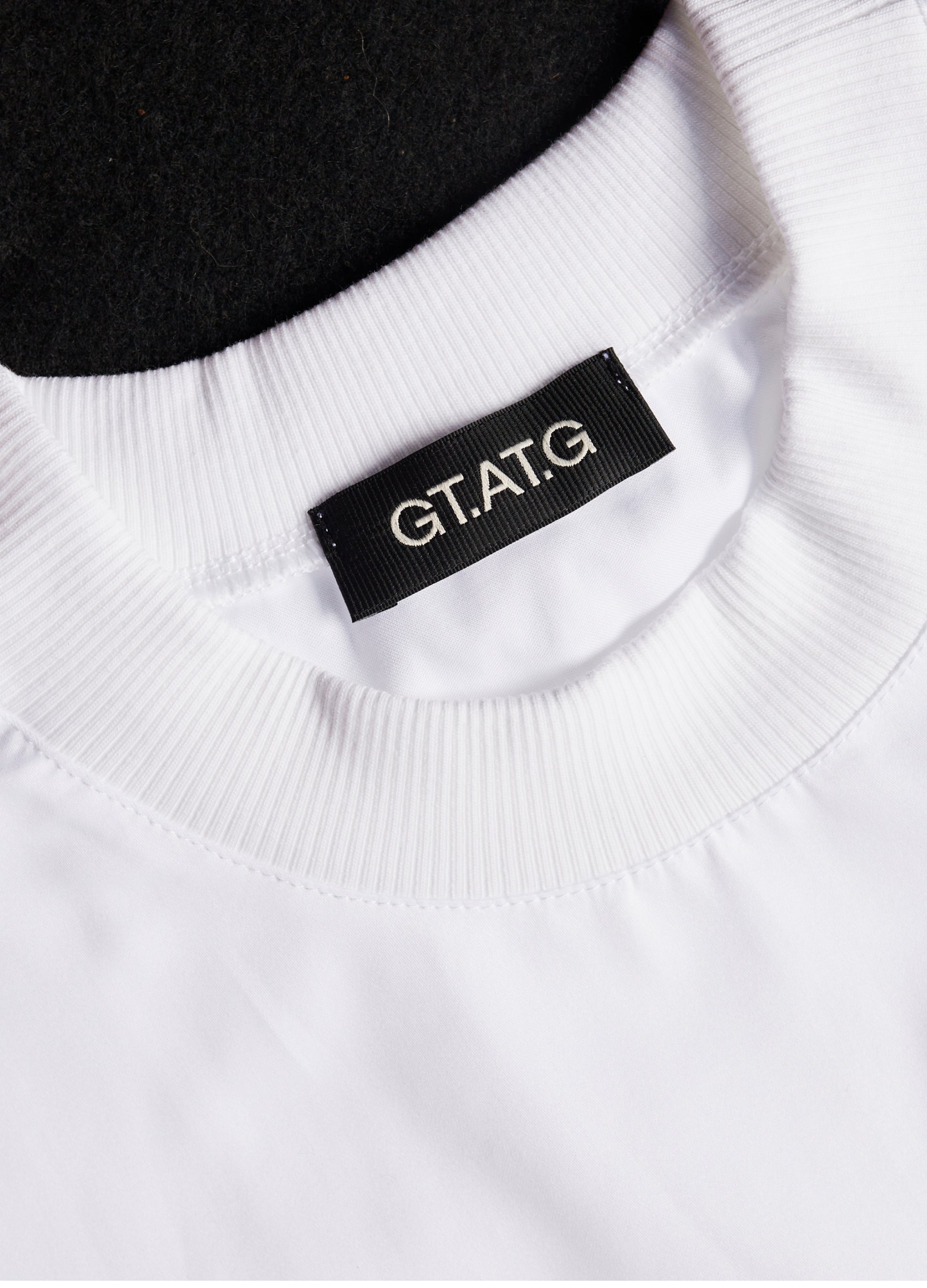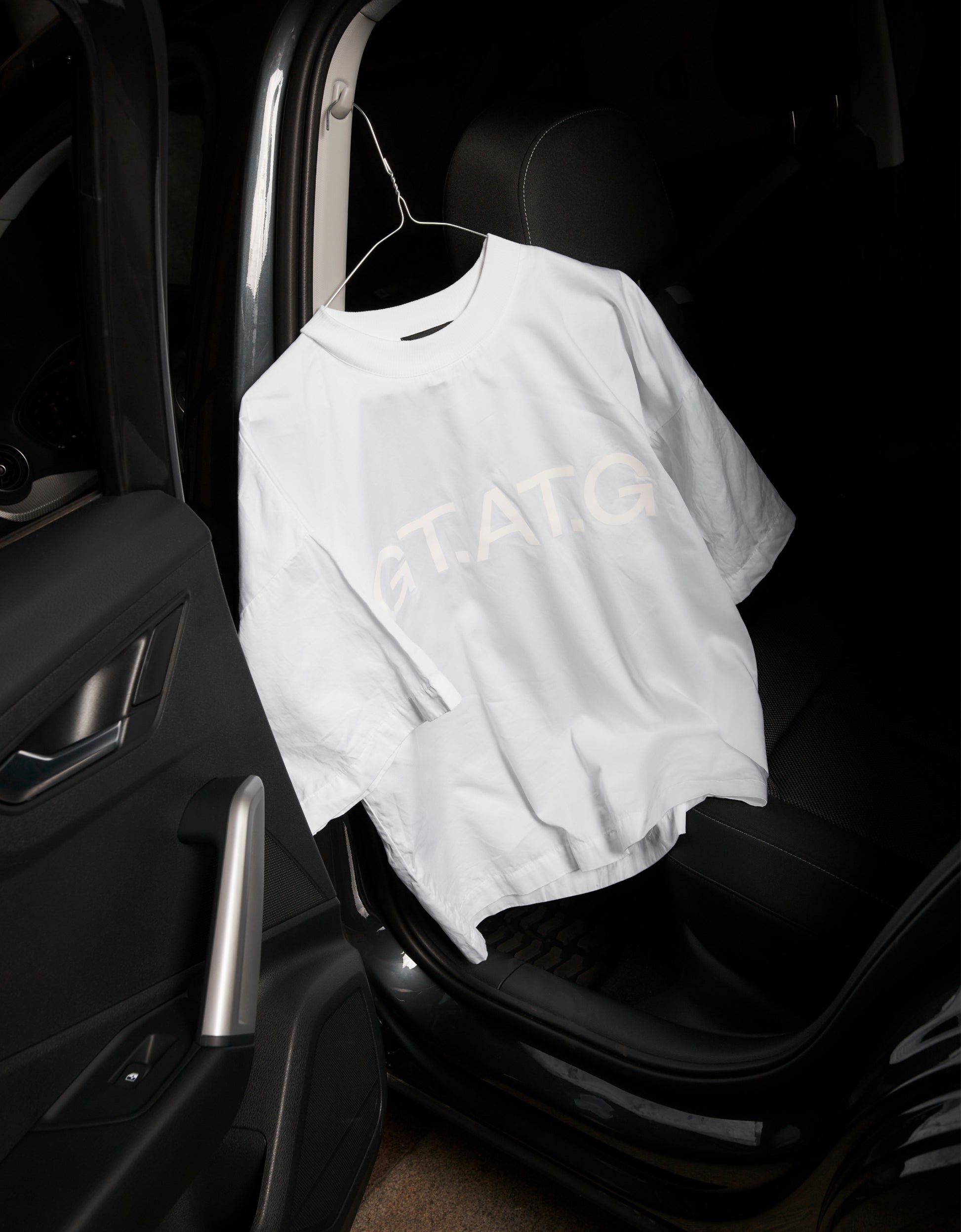 Úplně první triko od GT.AT.G. Ručně šité, lehké bílé triko s bílým potiskem. Volný střih, včetně širokých rukávů. Pevný lem kolem krku. Inspirováno závodními okruhy.